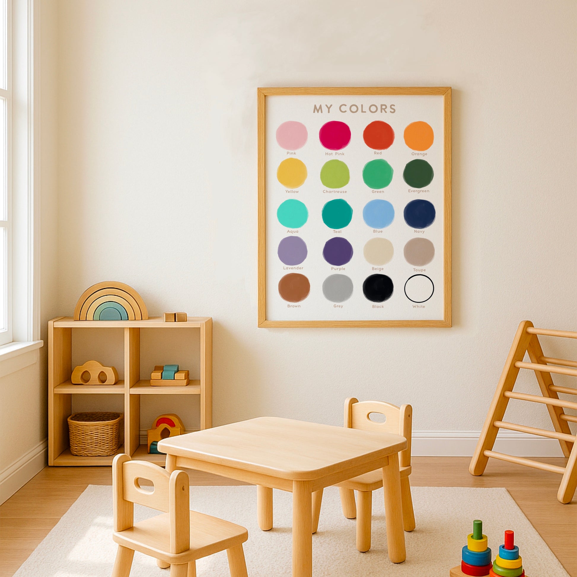 Our watercolor circles help little ones learn to identify colors in a fun and engaging way. Each circle is hand-painted in bright hues. It is perfect for adding a pop of color to your bedroom or playroom.
